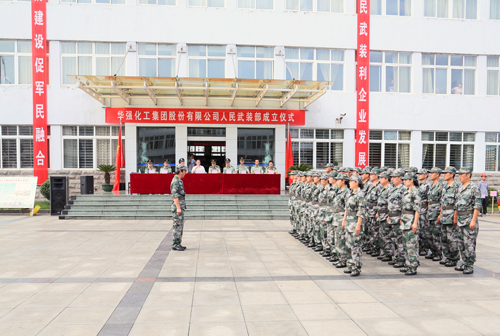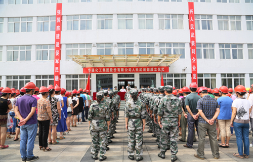 7月30日上午,我公司人民武装部成立仪式在华强广场隆重举行。宜昌军分区参谋长黄石松大校,当阳市委副书记覃绪华,市委常委、人武部部长陈飞东,当阳市人武部政委潘尔龙等领导出席了成立仪式。