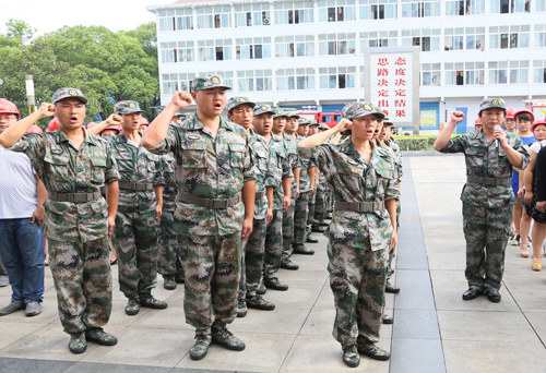 接着由公司人武部副部长陈涛组织民兵应急分队宣读民兵誓词,并在华强广场进行了队列动作和擒敌拳表演。整齐的队列动作和精彩的擒敌拳表演赢得了在场领导和观摩人员的阵阵掌声。