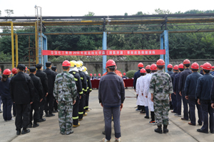 9月27日上午,我公司在液氨储罐区举办了2018年度危险化学品泄漏事故应急演练。当阳市安监局、经信局、质检局、环保局等部门领导到现场指导,公司各单位300余人现场观摩,董事长万建华为演练活动致辞。