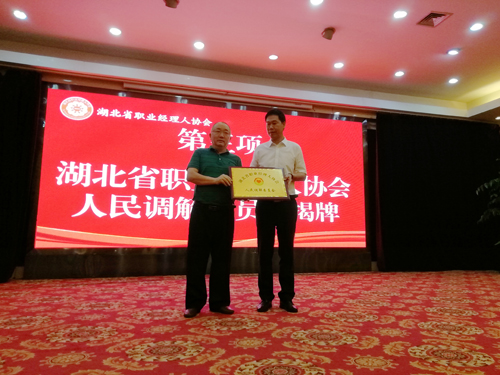 公司党委书记、董事长万建华同志作为“湖北省职业经理人协会”会长,在颁奖典礼上,董事长还为“湖北省职业经理人人民调解委员会”成立举行了揭牌仪式。