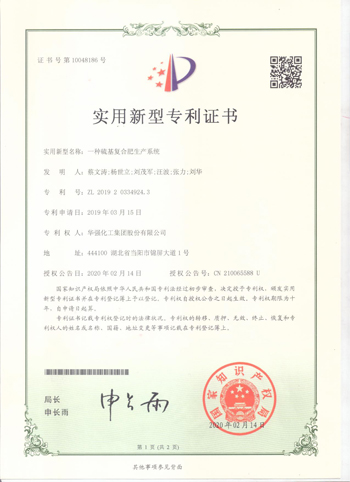 日前,由公司完成的“一种硫基复合肥生产系统”、 “一种锅炉化水处理系统”等5项实用新型专利获得国家知识产权局授权。
