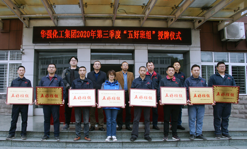 授牌仪式上,人力资源部部长陈平宣读了《2020年第三季度“五好班组”表彰通报》。经过车间申报,公司“五好班组”创建工作考评领导小组层层筛选、严格考评和公开公示,在全公司评比出热电车间工艺二班、造气车间3号工段工艺一班、甲醇车间工艺一班、三尿车间工艺一班、双氧水两钠车间双氧水工艺四班、仪表车间仪表四班、硫酸车间硫酸工艺二班、销售公司发运部汽运组等8个班组为2020年第三季度“五好班组”。公司为第三季度评出的“五好班组”颁发了牌匾,分别给予班长1000元、班员500元/人的奖励。
