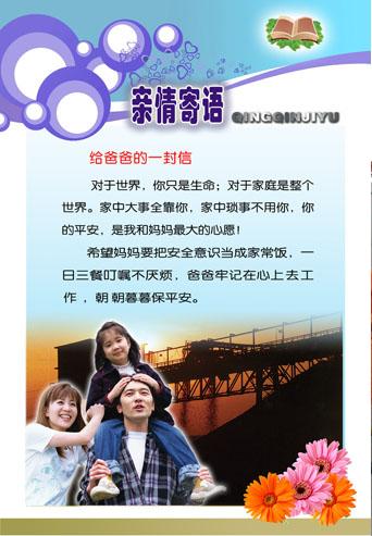 “安全亲情寄语”和你说句心里话,一语抵万金,作为一名华强公司的员工,我们感慨万千,当你每天匆匆忙忙地奔赴到自己的工作岗位的时候,你的领导,你的同事,你的丈夫,你的妻子,你的父母,你的家人……,你的周围所有关心你的人总是在期盼,只要你能平安归来,你们全家就感受到最大的幸福!