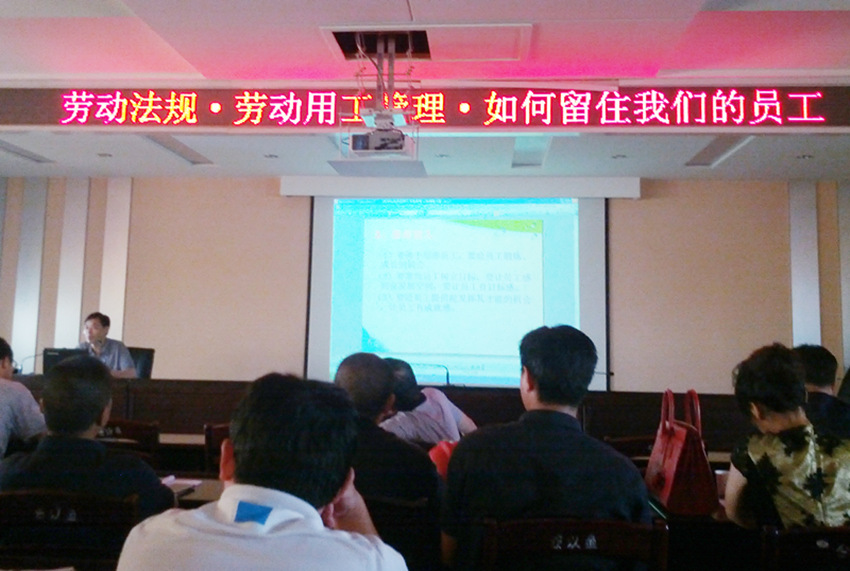 为规范我公司劳动人事及劳动用工管理,最大限度地规避劳动争议风险,同时,也为了让管理者了解未来劳动力市场的发展趋势,珍惜并留住员工,公司人力资源部于8月22日在生产办公楼五楼会议室对全公司管理人员进行了一次主题为“劳动法规·劳动用工管理·如何留住我们的员工”的培训,共150余名企业管理人员参加了培训。